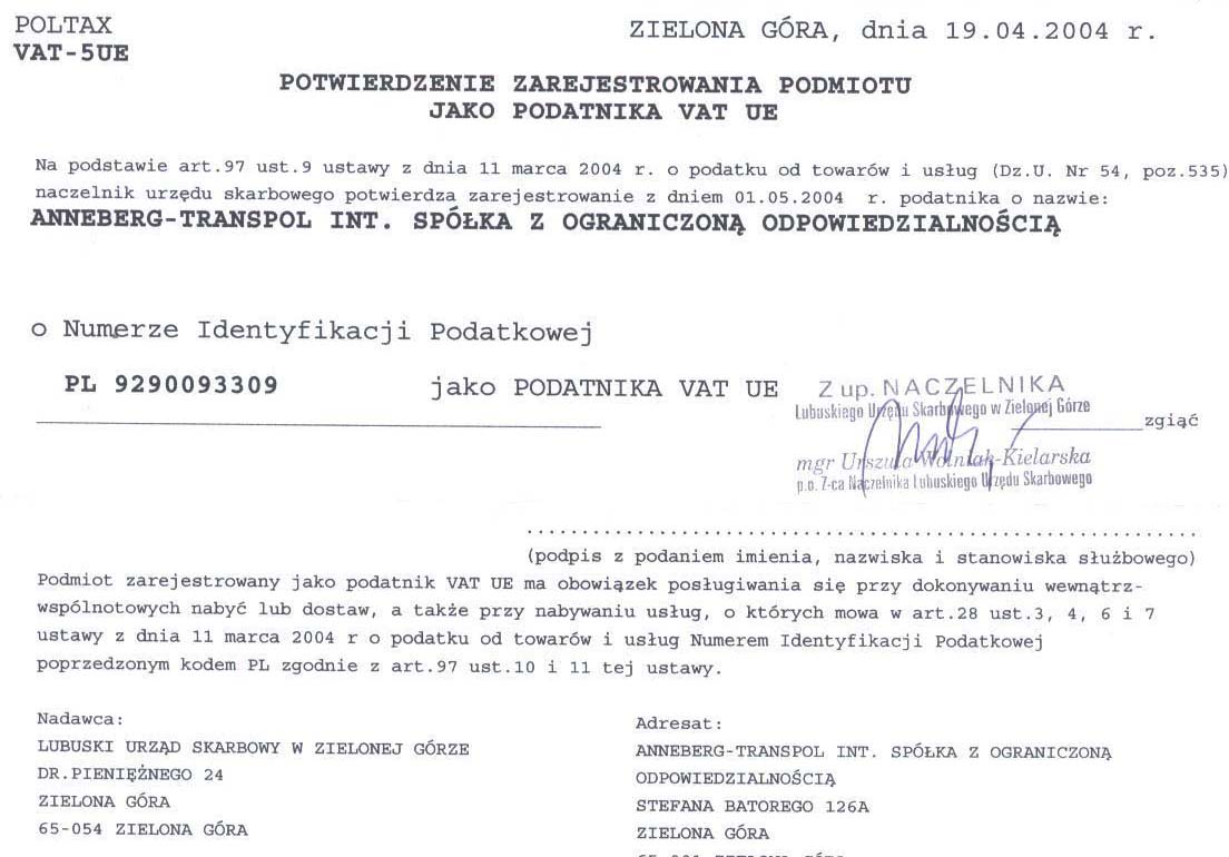 - ZWOLNIENIE NA TRASPORT ODPADÓW