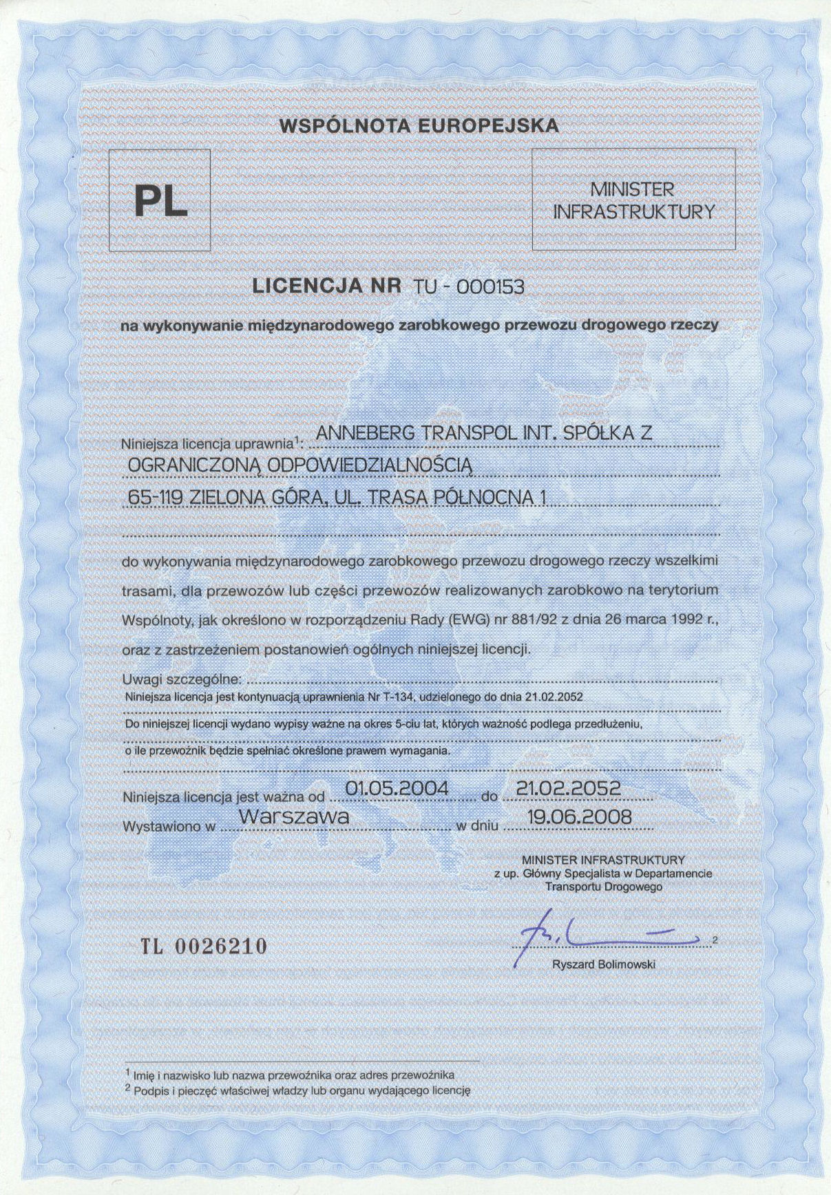 - LICENCJA TRANSPORT MIĘDZYNARODOWY